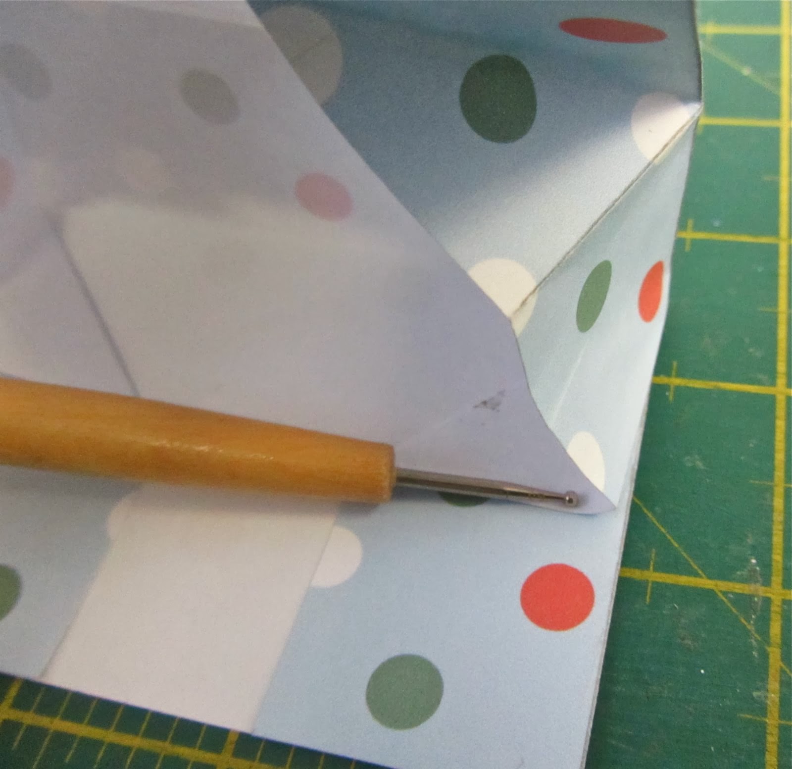 Here's a mini tut on how I made. I'll give you the bare-bone and go wild with how you choose to embellish this purse. This time I'm using a paper from the Angelberry CD - another great Christmas CD by PolkaDoodles. (Click on each picture for a better view of details.)