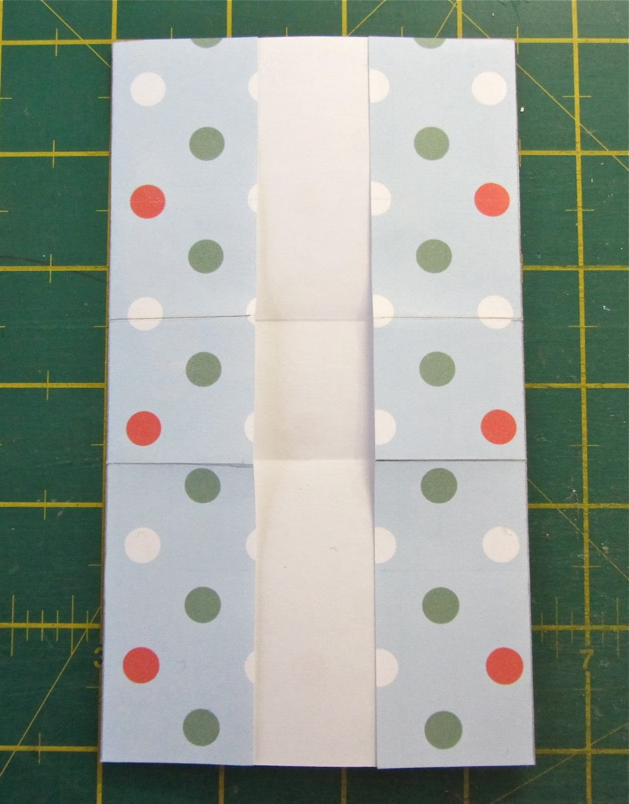 | 1. Start with a 6" x 6" piece of paper and score as shown above. |