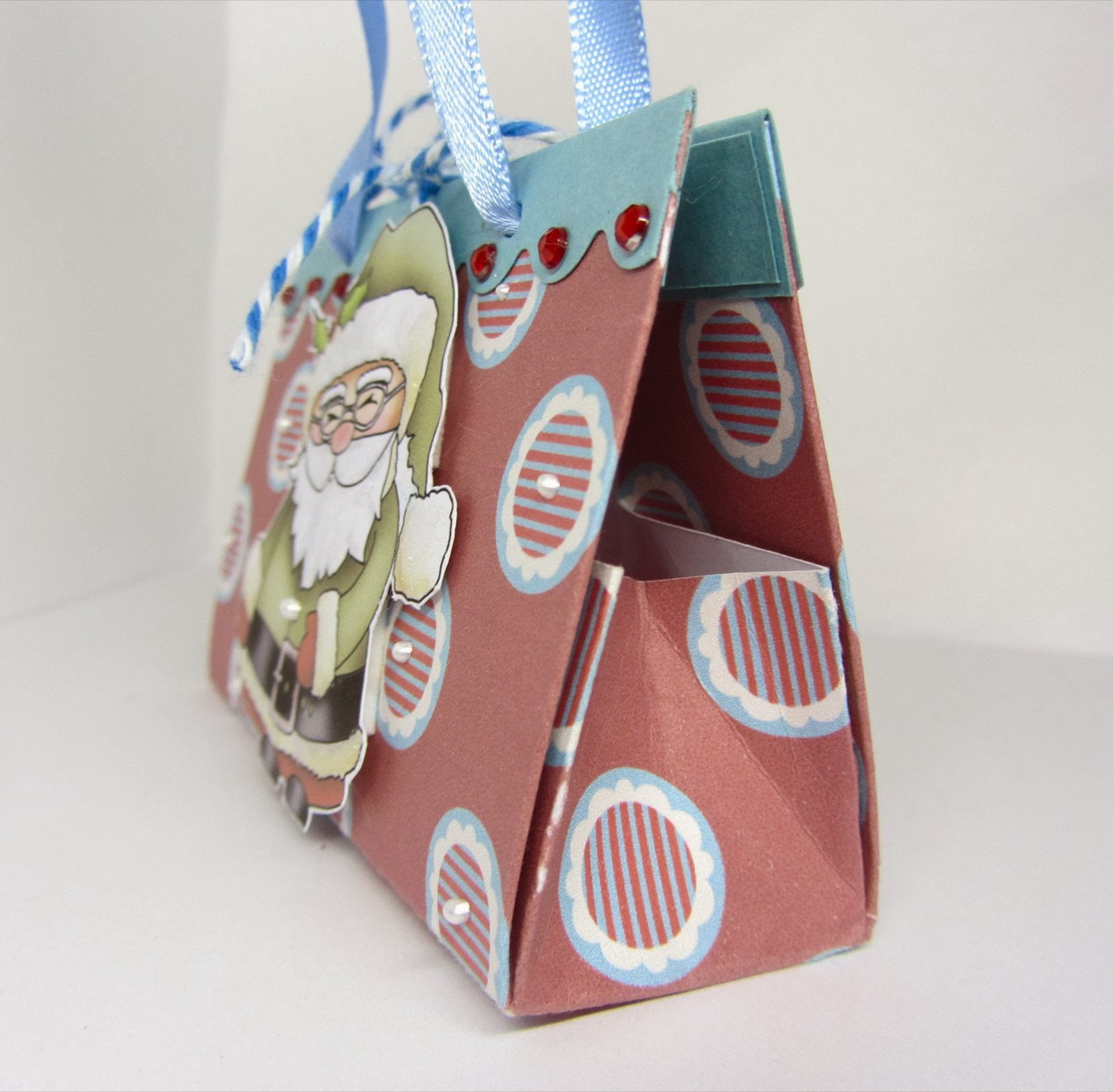 What an adorable gift bag! Your Santa is just to cute! Thanks for sharing it with us at Delightful Challenges, "You're A Gem"! :)