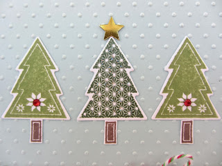 I heat embossed the image in black and some colour on the tree using Promarkers. There is also some dry embossing with the Swiss Dots folder on the cream panel.