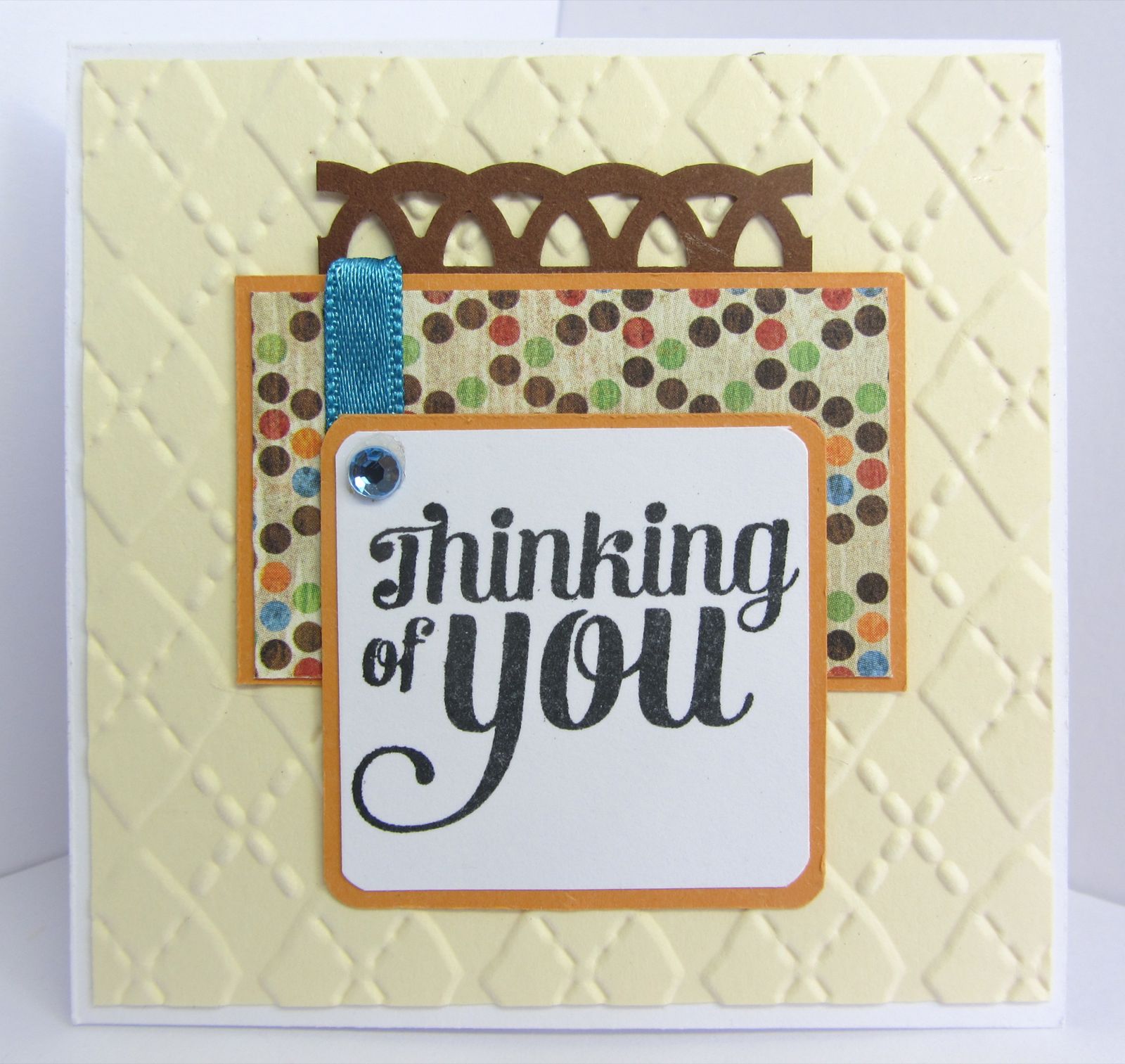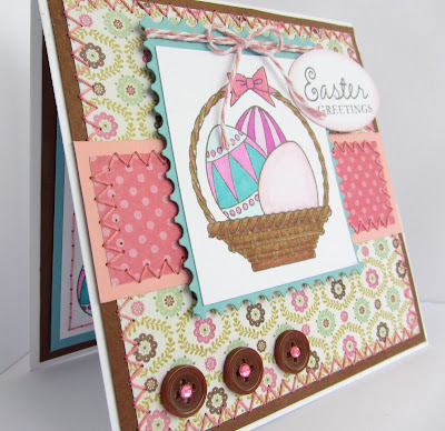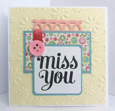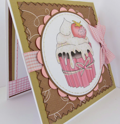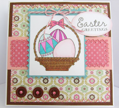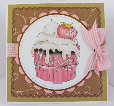 | The card measures 4.5"x3.5" and will go with a box of my friend's favourite chocolates (She will enlist my help to finish! :-D). The background papers are from an old faceless nameless pack. |