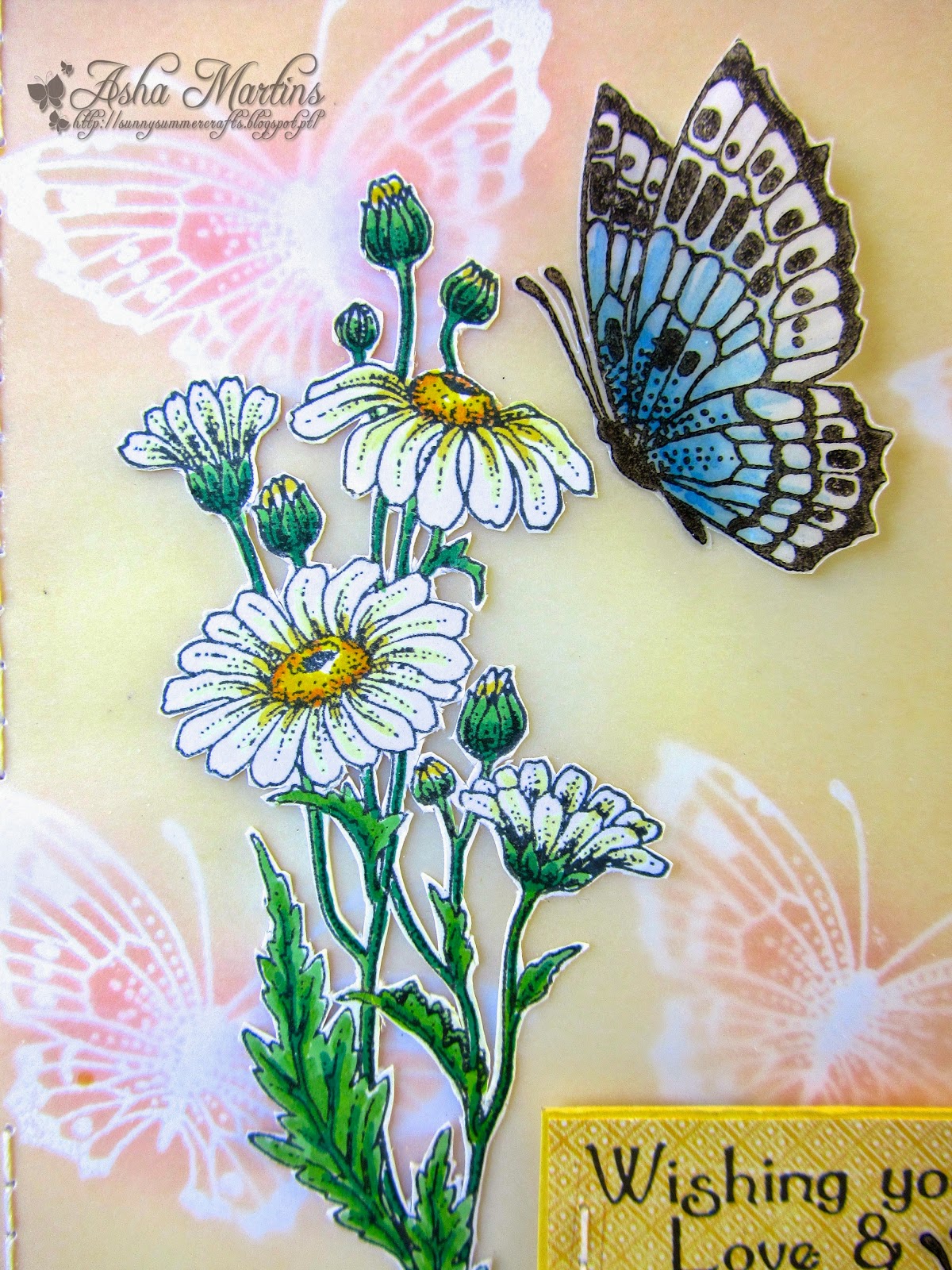 | The pattern paper is from Cosmo Cricket "Togetherness" 6x6 pad. I coloured the image with Graph'It and Promarkers. For embellies: sheer pink ribbon and bling. |